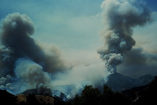LOS ANGELES - 10-27-03 - Activity along'the usually-busting arterial system of rail lines, airports, and highways that link Southern California?with the rest of the country has slowed to a crawl as the wildfires ravaging the region from San Diego northward to the greater Los Angeles area continue to burn out of control.